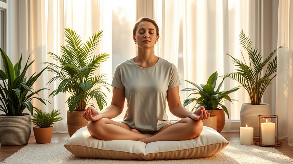As you incorporate these mindfulness techniques and breathing exercises into your daily routine, you’ll start to notice a gradual decrease in your anxiety levels. Consistency is key; even a few minutes each day can make a significant difference. When practicing, aim for a quiet, comfortable space free from distractions. Set aside dedicated time, perhaps in the morning or before bed, to establish a calming routine. Over time, these techniques become second nature, giving you a reliable toolkit to manage anxiety as it arises. Remember, meditation isn’t about eliminating anxiety completely but rather learning to observe it without becoming overwhelmed. With patience and practice, you’ll find that your mind becomes more resilient, your stress levels decrease, and you gain a greater sense of control over your emotional well-being. Building awareness through evidence-based insights can enhance your meditation practice and improve your overall mental health.