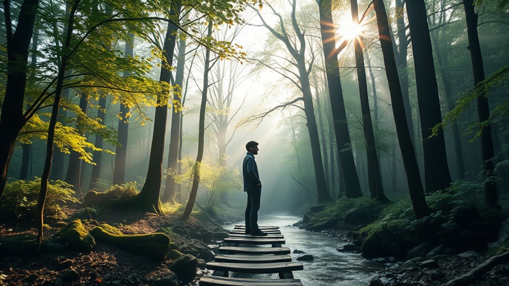 To develop emotional resilience, focus on practicing mindfulness techniques like deep breathing, body scans, or mindful walking to stay grounded and manage stress effectively. Cultivate habits that reinforce your ability to handle setbacks, such as regular meditation or yoga. Recognize stress triggers early and respond with calm, controlled actions. Building these habits helps you bounce back faster and view challenges as opportunities for growth. Keep exploring these strategies to strengthen your emotional strength further.