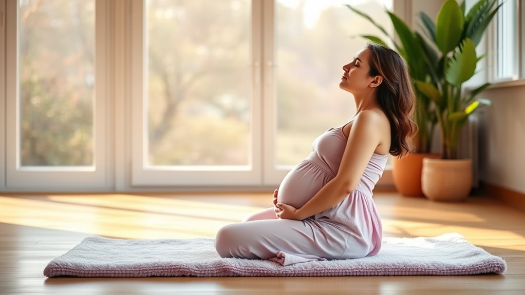 As you progress through pregnancy, you’ll notice how these practices help improve your overall sense of well-being. They encourage mindfulness, promote better sleep, and foster a positive outlook. By integrating breathing techniques and meditation practices into your prenatal routine, you’re not just preparing your body for labor but also nurturing your mental health. This holistic approach ensures you feel more in control, relaxed, and connected to your growing baby. Additionally, practicing aromatic inhalation with essential oils can further enhance relaxation and emotional balance during your pregnancy journey. Remember, these tools are always accessible, simple to learn, and can be practiced anywhere, making them invaluable companions throughout your pregnancy journey.