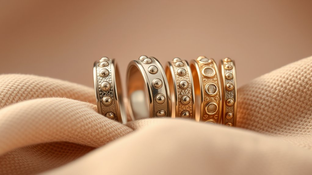 Choosing a high-quality material is essential for ensuring your acupressure finger ring lasts and remains safe to wear. I always look for rings made from durable stainless steel because they resist rust, corrosion, and fading over time. It’s equally important to verify that the material is non-toxic and hypoallergenic, which helps prevent skin irritation or allergic reactions, especially with prolonged wear. I also pay attention to the craftsmanship, ensuring the rings have sturdy construction and reliable soldering to handle repeated pressure without breaking. Smooth edges and finishes are a must—I want to avoid discomfort or potential skin injuries. Additionally, rings with an anodized coating or protective surface help maintain vibrant colors and extend their lifespan, making them a safe and lasting choice.