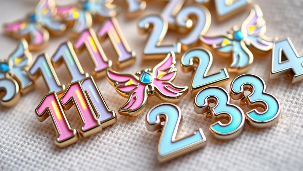 If you’re looking to add some spiritual style to your collection, the 12 best angel-number enamel pins are perfect. These pins feature vivid colors, intricate designs, and meaningful symbols like angel motifs, crosses, and divine guidance numbers. They’re versatile, easy to wear, and packed with emotional significance. Whether for protection, healing, or inspiration, these pins can brighten your day. Keep exploring to discover more about each unique piece and how they can elevate your accessory game.