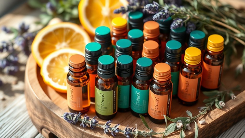I’ve found 15 top essential oil roller blends that can lift your mood and boost your wellness. These include calming, focus-boosting, and happiness-enhancing options made with high-quality, skin-safe ingredients. They’re perfect for quick application on pulse points and easily portable for on-the-go use. Whether you want to relax or energize, these blends offer natural support. Keep exploring—there’s more to discover about choosing the best blends for your needs.