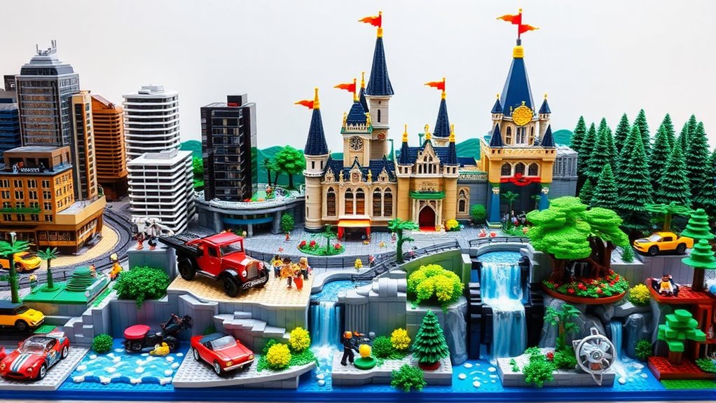 Selecting a LEGO set that resonates with your personal interests guarantees it becomes a meaningful addition to your collection or decor. When choosing, focus on themes like architecture, vehicles, or pop culture that truly excite you. Opt for sets with detailed, realistic designs to satisfy your appreciation for craftsmanship and authenticity. Consider models that depict iconic landmarks, cityscapes, or symbols that hold significance, making your display more meaningful. Look for sets that offer a challenging building experience, with complex techniques and intricate elements suited for adult skill levels. Additionally, prioritize those with educational or cultural importance, as they add depth and value beyond mere aesthetics. This thoughtful approach ensures your LEGO collection reflects your passions and becomes a source of pride.