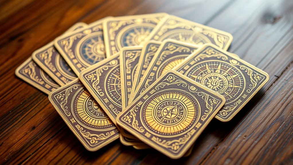 A detailed guidebook can substantially enhance your experience with a numerology affirmation card deck by providing clear explanations of each card’s meanings and symbols. This extensive guidance helps deepen understanding during readings, making complex messages easier to interpret. A well-developed guidebook also offers instructions on how to combine cards, enabling more insightful visualizations and personal growth practices. For beginners, detailed explanations increase confidence by making intricate numerology concepts accessible. Additionally, exhaustive guidebooks often include tips on applying numerology principles to daily life, boosting the deck’s practical value. When choosing a deck, consider how thorough the guidebook is—an in-depth resource can truly empower your journey by fostering clarity, confidence, and meaningful insights.
