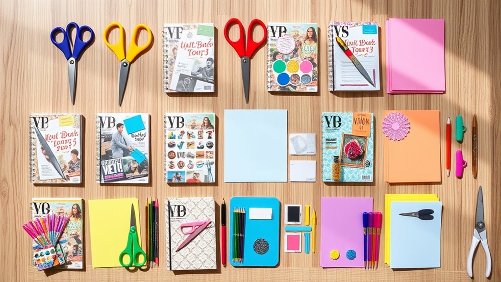 To guarantee a smooth and enjoyable crafting experience, I focus on kits that come with clear, detailed instructions and intuitive layouts. This helps me avoid confusion and makes the process more enjoyable. I also look for pre-cut or perforated materials, which simplify assembly and cut down on extra tools or supplies I need to gather. Kits with minimal setup steps, like ready-to-use images and quotes, streamline my creative flow and save time. An organized kit with a variety of supplies keeps things neat and prevents frustration. Most importantly, I choose kits suited to my skill level, whether beginner or experienced, so I can craft comfortably without feeling overwhelmed. Ease of use is key to making vision-board creating both fun and effective.
