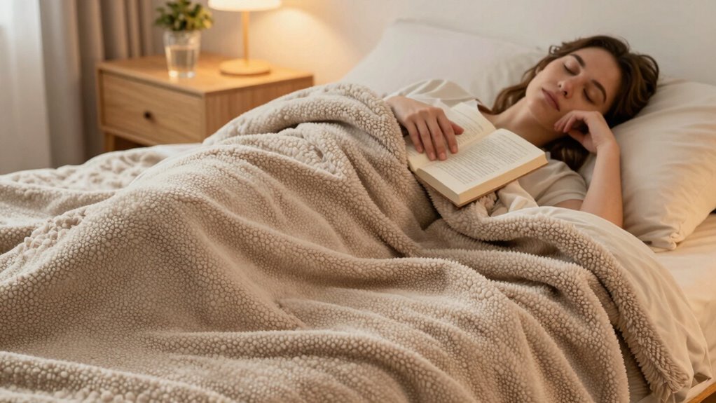 You’ll notice weighted blankets are like the superhero of sleep gear—more than just a regular blanket. They use special, durable fabrics that withstand endless washes, unlike standard blankets that wear out fast. Plus, their aesthetic options are endless, making them stylish as well as functional. The added weight provides gentle pressure, promoting relaxation and better sleep, setting them apart dramatically from ordinary blankets that just cover you.