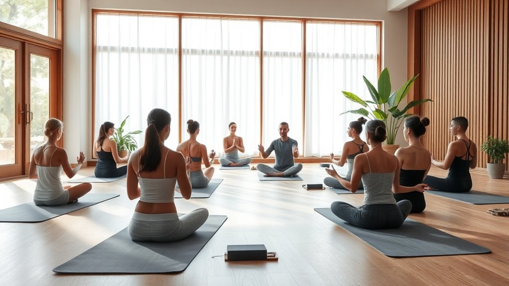 Choosing the right yoga style is like finding your perfect dance partner; it should feel natural and inspiring. To do this, explore different styles, paying attention to your body’s signals. Focus on yoga philosophy and breathing techniques to guide your choice—gentle styles like Hatha or restorative yoga might suit beginners, while Vinyasa or Ashtanga offer more flow. Trust your instincts, and you’ll discover the style that resonates with your energy and goals.