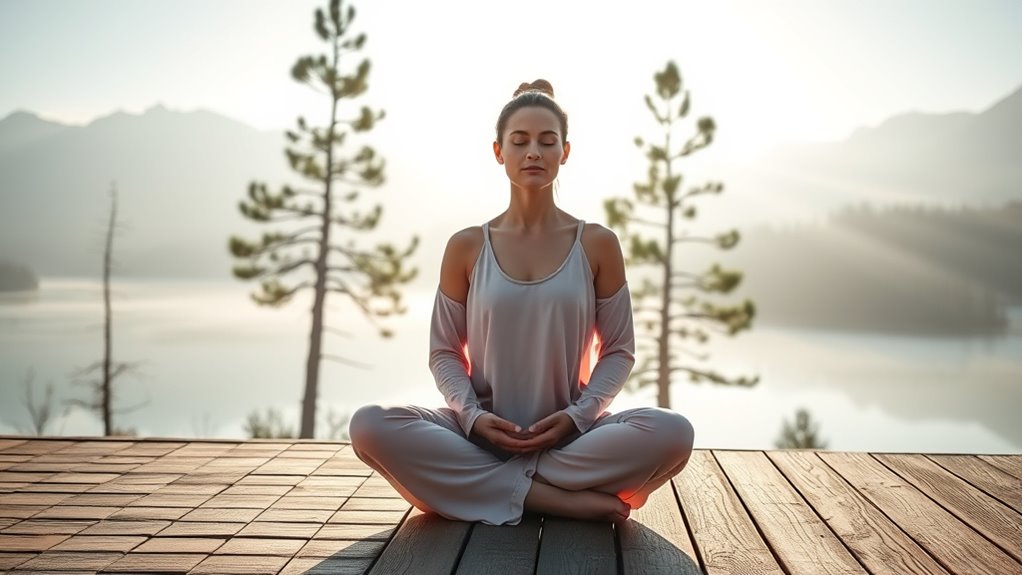 You should try gentle styles like Hatha or Yin Yoga, which emphasize mindfulness meditation and breath control. These styles help you focus inward, releasing emotional tension and gaining clarity. You don’t need prior experience; just approach each session with patience and an open mind. By practicing regularly, you’ll enhance your emotional balance, deepen your awareness, and improve your overall well-being through mindful movement and controlled breathing.